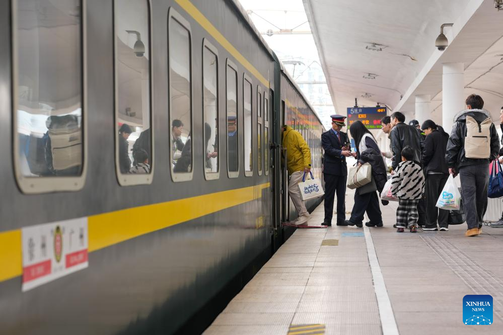 GUANGZHOU, 25 enero, 2026 (Xinhua) -- Pasajeros abordan un tren K303 en la Estación de Ferrocarril de Guangzhou, en Guangzhou, en la provincia de Guangdong, en el sur de China, el 25 de enero de 2026. El tren K303, el último tren convencional partió de aquí el domingo, concluyendo la operación terminal de este tipo de trenes en una estación de un siglo de antigüedad. (Xinhua/Wu Lu)