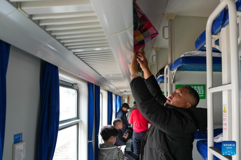 GUANGZHOU, 25 enero, 2026 (Xinhua) -- Un pasajero acomoda su equipaje en un vagón del tren K303 en la Estación de Ferrocarril de Guangzhou, en Guangzhou, en la provincia de Guangdong, en el sur de China, el 25 de enero de 2026. El tren K303, el último tren convencional partió de aquí el domingo, concluyendo la operación terminal de este tipo de trenes en una estación de un siglo de antigüedad. (Xinhua/Wu Lu)