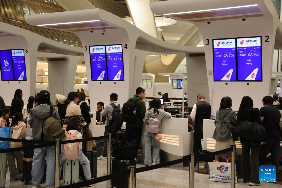 ABU DABI, 25 enero, 2026 (Xinhua) -- Imagen del 24 de enero de 2026 de pasajeros preparándose para abordar un vuelo hacia Beijing en el Aeropuerto Internacional de Zayed, en Abu Dabi, Emiratos Arabes Unidos (EAU). Una ruta aérea directa entre la capital de China, Beijing y Abu Dabi, en los EAU, ha sido lanzada, marcando la primera conexión directa entre ambas capitales operada por una aerolínea china. (Xinhua)