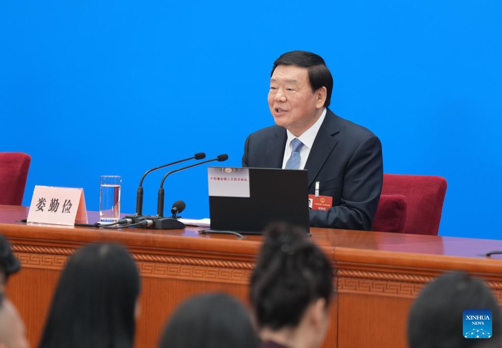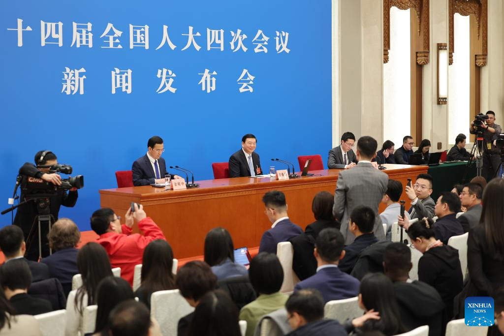 Lou Qinjian, portavoz de la cuarta sesión de la XIV APN, informó a la prensa sobre la sesión.