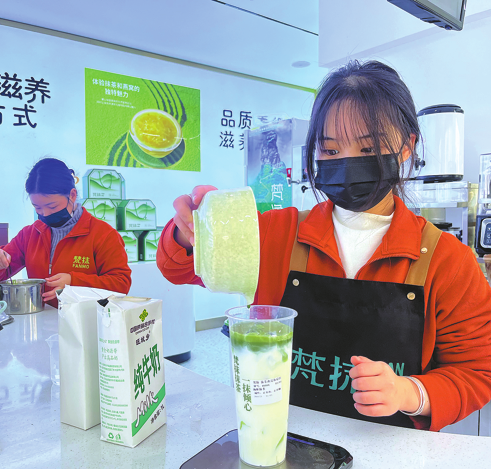 Una trabajadora hace matcha en una tienda de té en Jiangkou el 29 de enero. LONG YIN / CHINA DAILY